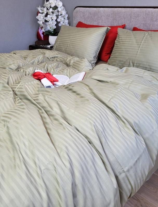 Оливковий Страйп - Сатин - Євро комплект постільної білизни